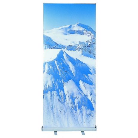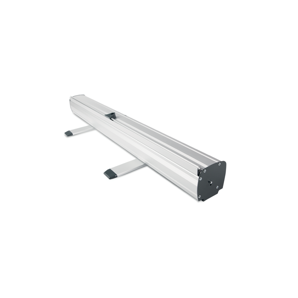 Le visuel est enroulé et protégé dans le pied caréné de la structure aluminium.